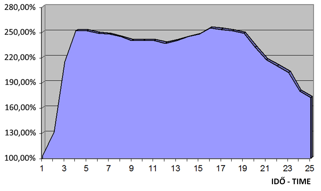 Az 1-es diagramból jól látható, hogy a kontrollcsoporthoz képest jelentősen javult az inzulintermelés a speciális őssejtfokozó készítményt fogyasztó állatok esetén.